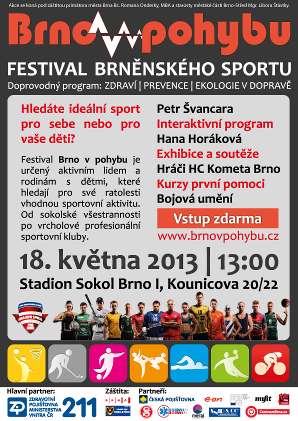 Judo SKKP Brno se podílí na sportovním festivalu Brno v pohybu, který se koná 18.5.2013 v Stadionu na Kounicově.